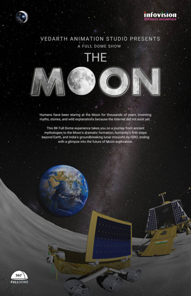The Moon Mission is an immersive full dome show that takes audiences on an exciting journey to Earth’s closest celestial neighbor the Moon. Blending science, exploration, and cinematic storytelling, the show traces humanity’s enduring fascination with the Moon and our quest to explore its surface.The experience begins with the Moon’s formation and its vital influence on Earth, including tides, timekeeping, and the rhythms of life. Audiences are then taken through key milestones of lunar exploration, from early observations and robotic probes to historic human landings and modern missions that continue to unlock the Moon’s secrets.Through breathtaking dome visuals, realistic lunar landscapes, and dynamic spaceflight sequences, The Moon Mission explains complex concepts such as lunar geology, gravity, phases of the Moon, and the challenges of surviving and working on an airless world. The narrative also looks ahead to future missions, highlighting the Moon’s role as a stepping stone for deeper space exploration.Developed by Vedarth Animation Studio, The Moon Mission is designed to educate, inspire, and ignite curiosity among audiences of all ages offering a powerful immersive experience that brings the story of lunar exploration vividly to life.